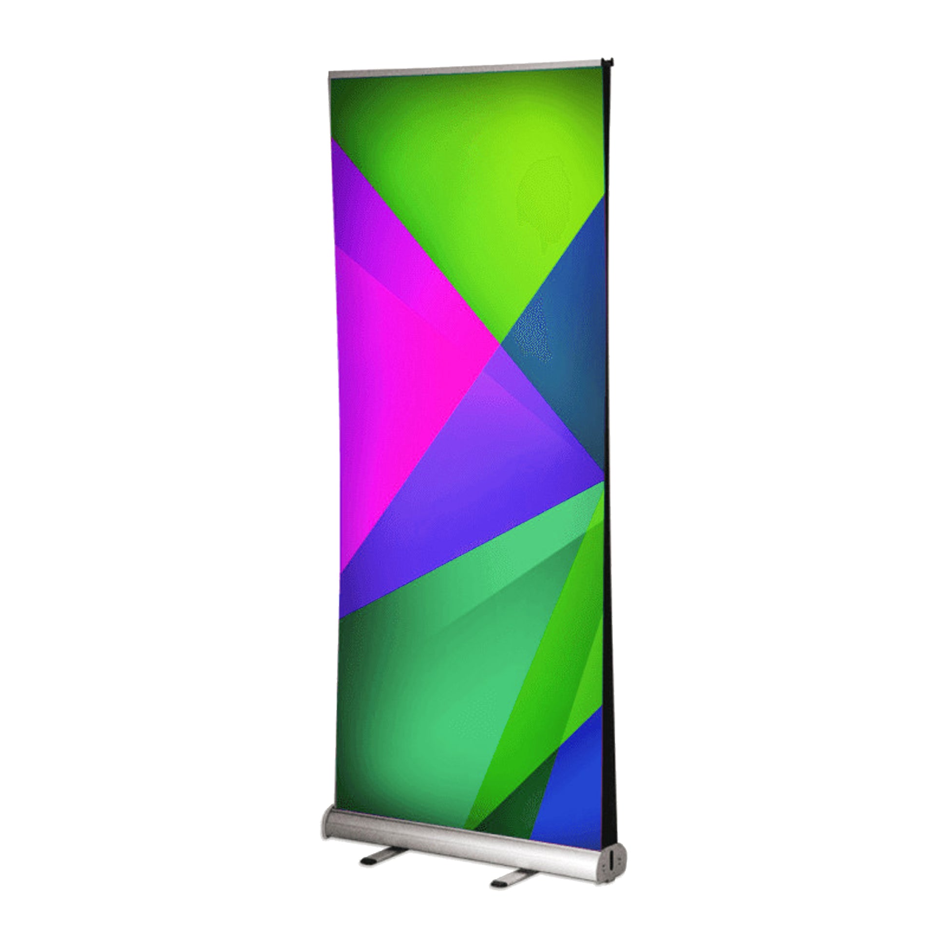 Pour imprimer une bannière rétractable double face en gros, nous imprimons deux bannières en vinyle mat et les installons ensemble dans un support de bannière rétractable spécialement conçu pour contenir deux bannières rétractables dos à dos.
